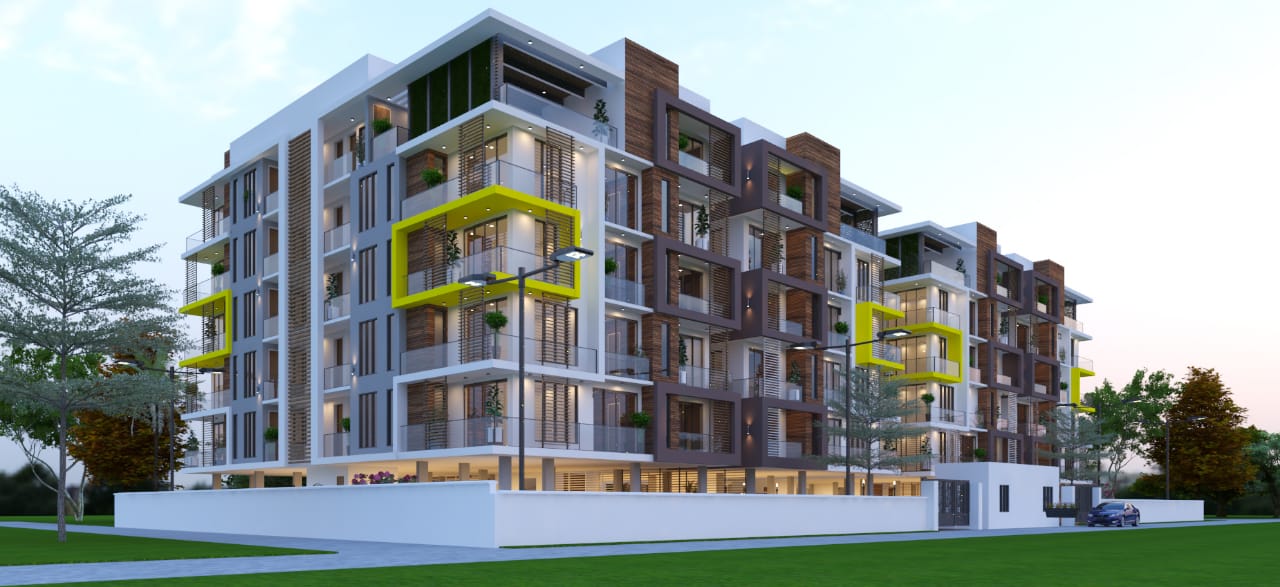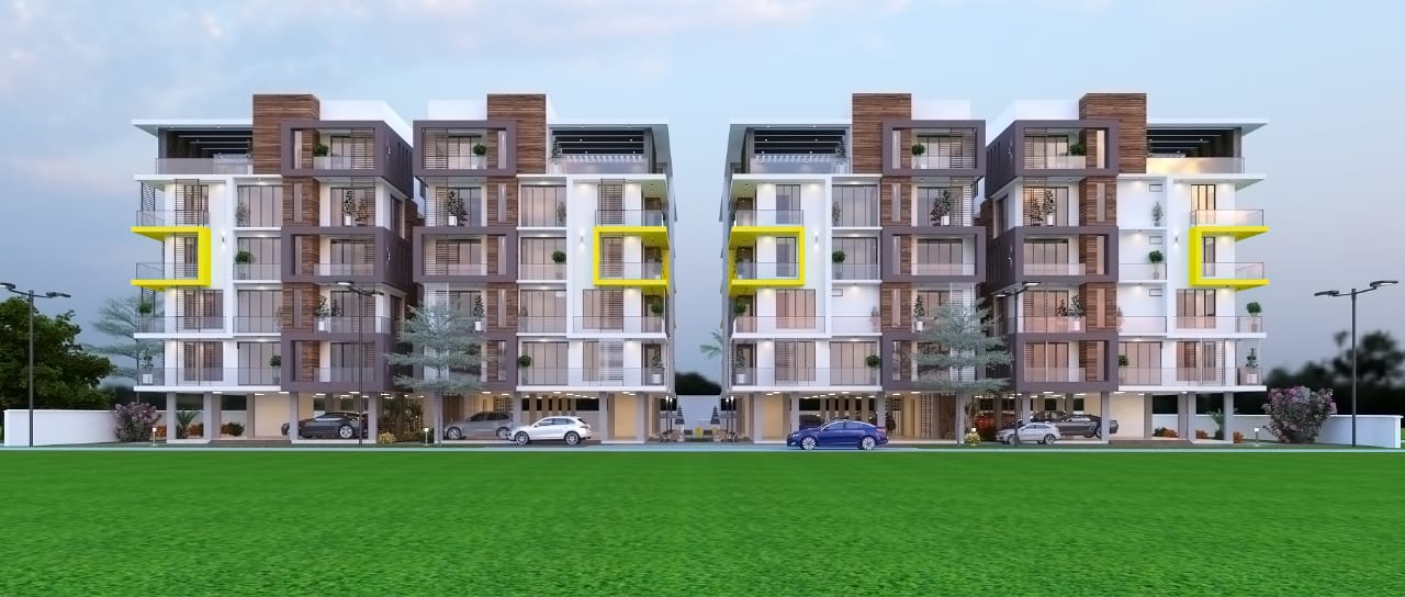 This high-rise residential development expresses vertical elegance through its rhythmic curves and symmetrical form. The twin towers rise around a central courtyard, framing views and creating a strong architectural presence. Continuous balconies wrap each level, emphasizing horizontal flow while enhancing natural light and ventilation.